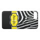 This personalised black and white Case-Mate custom iPhone 7 case has a fun zebra print striped background pattern with a yellow and black band to add your name, initials, monogram or other text to. This modern and trendy new case makes a chic statement for the hip young fashionista! If you need assistance, email niteowlstudio@gmail.com.