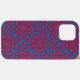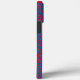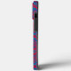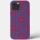 This iPhone case tribal geometric pattern. Vivid blue and red dominate. This design comes from original tile by Oregon tile maker Fay Jones Day.