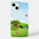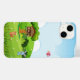 Bring a touch of playful charm to your iPhone 14 with our adorable cartoon animal and treehouse case. This heartwarming design features a whimsical scene with a cosy treehouse home to three mischievous monkeys peeking out from within. The vibrant landscape includes a sweet blue bunny rabbit sitting amongst the green grass dotted with tiny white flowers, a curious reddish-brown squirrel, and a cheerful pink bird soaring in the sunny sky. A bright yellow sun with a friendly face peeks from behind fluffy white clouds, all set against a clear blue backdrop. This delightful and engaging design is printed with durable, high-quality inks to ensure long-lasting vibrancy and protection against scratches and minor impacts. Available in various case styles, from slim and lightweight to more robust options, this case will add a touch of joy and personality to your iPhone 14.
