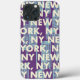 NY NEW YORK Graphic Pattern with Skyscrapers in the Background in Purple & Blue.