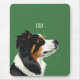 This mousepad has a minimalistic design with a solid green background and an Australian shepherd dog illustration. It is a great design for dog owners and lovers - especially Australian shepherd owners.