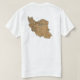 The front of this t-shirt bears a small Iranian flag with its familiar red motif in a white band with green band above and red band below, while the back displays a relief map of Iran. Available on t-shirts, sweatshirts, polos, long-sleeves and more.