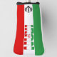 Iran Flag Gorgeous Patriotic Golf Head Cover engulfed in the colour combination from the Iran national flag. Inscription "Iran" infused with the pattern from the national flag of Iran is positioned over the background. Small Iran Coat of Arms is placed on the bottom. Position and size of the inscription and the Coat of Arms is fully customisable using "Customise it!" feature. You can even choose to remove some of the elements if the clean, flag colours only design is needed. Before the click on the "Add to Cart" button do not forget to change the piping colour to your liking. This adorable head cover will for sure catch attention on the golf course. Happy golfing! © 2023 CountriesOfTheWorld