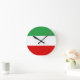 The clock did not take as long to arrive as I thought it might and was extremely well packaged. I didn't do the measurements so I didn't realize it is a little smaller than the average clock but that does not matter (just make sure you check if that's important to you).It is really nifty! It seems very solid and well made not flimsy at all. It has been going well and has kept good time in its few weeks on my wall. Nice product. Gets noticed too! Nicer in real life than the picture but true to the picture