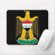The coat of arms or state emblem of Iraq is a golden black eagle looking toward the viewer's left dexter. The eagle is the Eagle of Saladin associated with 20th-century pan-Arabism, bearing a shield of the Iraqi flag, and holding a scroll below with the Arabic words جمهورية العراق (Jumhuriyat Al-`Iraq or "Republic of Iraq").
