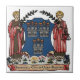 Dublin city Ireland antique civic crest with 3 towers blazing. Latin inscription of city motto - Obedientia Civium Urbis Felicitas. Translated - Happy the city where citizens obey.
