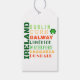 Subway style gift tag lists the top cities of Ireland in various fonts and Irish theme colour