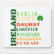 Subway style graphic lists the top cities of Ireland in various fonts and Irish theme colour