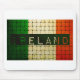 Digital graphic Irish flag, woven texture, black tape text overlay