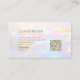A modern and stylish business card design featuring a vibrant, iridescent colour palette of soft pinks, purples, and blues. The design is accented with a shimmering bokeh and elegant gold glitter, creating a beautiful and eye-catching effect. Light details add a touch of sparkle and dreaminess, making it perfect for creative professionals, jewellery designers, or anyone looking for a chic and memorable brand identity.