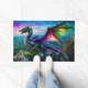 Beautiful and colourful Iridescent Dragon with wings wide spread stands on a mountain