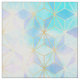 Geometric cube shapes are layered in a pattern and coloured in alternating shades of pastel blue, pink and purple that gives it an iridescent glass look. The shapes are outlined in faux gold glitter.