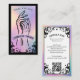Elevate your nail studio or nail artist brand with our Iridescent Holographic Vintage Nail Studio Business Card, featuring a hand-drawn ornate scroll frame set against a faux iridescent holographic background for a striking, tarot-inspired look. The front showcases an elegant posing hand centered within the scroll design, leaving space for your studio name and tagline, while the reverse displays graceful flourishes, an iridescent holographic frame, and your contact information with a QR code for easy bookings. The dramatic blend of black paired with shimmering holographic accents creates a sophisticated, mystical aesthetic, perfect for nail studios, nail artists, and beauty professionals seeking a unique, vintage-inspired presentation. Design and illustration created by ©Moodthology Papery.