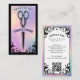 Elevate your hair salon or stylist brand with our Iridescent holographic vintage hair salon business card, featuring a hand-drawn ornate scroll frame set against a faux iridescent holographic background for a striking, tarot-inspired look. The front showcases vintage scissors centered within the scroll design, leaving space for your company name and tagline, while the reverse displays elegant flourishes, an iridescent holographic frame, and your contact information with a QR code for easy bookings. The dramatic blend of black and paired with shimmering holographic accents creates a sophisticated gothic aesthetic, perfect for hair salons, hair stylists, barber shops, and beauty professionals seeking a unique, mystical, and vintage-inspired presentation. Design and illustration created by ©Moodthology Papery.