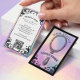 Elevate your hair salon or stylist brand with our Iridescent holographic vintage hair salon business card, featuring a hand-drawn ornate scroll frame set against a faux iridescent holographic background for a striking, tarot-inspired look. The front showcases a vintage ornate mirror centered within the scroll design, leaving space for your company name and tagline, while the reverse displays elegant flourishes, an iridescent holographic frame, and your contact information with a QR code for easy bookings. The dramatic blend of black and paired with shimmering holographic accents creates a sophisticated gothic aesthetic, perfect for hair salons, hair stylists, barber shops, and beauty professionals seeking a unique, mystical, and vintage-inspired presentation. Design and illustration created by ©Moodthology Papery.