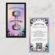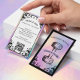 Elevate your fitness brand with our Iridescent Holographic Personal Trainer Business Card, featuring a hand-drawn dumbbell set within an ornate scroll frame against a faux iridescent holographic background for a bold, modern look. The front highlights your name and title, while the reverse displays your contact information, social handles, and QR code for easy bookings. The shimmering holographic accents combined with sleek black details create a striking, contemporary aesthetic perfect for personal trainers, fitness coaches, gym owners, and fitness professionals seeking a unique, professional, and memorable business card. Design and illustration by ©Moodthology Papery.