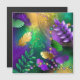 Iridescent mardi gras background with beads magnetic invitation