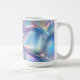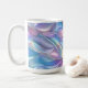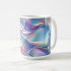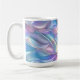 A blue, orange, gold and purple iridescent, metallic geometric design perfect for a coffee mug.