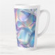 A blue, orange, gold and purple iridescent, metallic geometric design perfect for a latte mug.