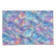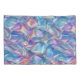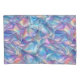 A blue, orange, gold and purple iridescent, metallic geometric design perfect for a pillow case.