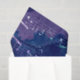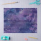 Lines of iridescent musical notes on an abstract purple background that looks almost like watercolor. Great for decoupage artwork, paper crafts, or gift wrapping.