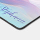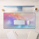 Elevate your office aesthetic with this stunning desk mat featuring a high-quality 3D iridescent silk wave design. The fluid, luminous ribbons of colour flow seamlessly in a beautiful palette of soft peach, sunset orange, and ethereal sky blue. A personalised name is elegantly featured in a sophisticated violet script font in the lower corner, adding a professional and artistic touch to your workspace. This large-format mat provides a durable, smooth surface for your mouse and keyboard while protecting your desk from daily wear. Perfect for those who love modern abstract art and a refined, airy workspace, this personalised accessory brings a touch of luxury and creative energy to your productive day.