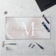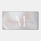 Personalise this elegant white initial monogram with iridescent pearl background desk mat.