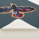 A multi-colour folk art rendition of a raven (Corvus corax). The colours of the feathers evoke a sense of iridescence. Customise by adding your own text. You may change both the font and the text colour, as well as the background colour.