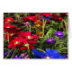 A riot of colourful spring flowers in bright red, blue, purple, pink, and orange.
