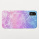 This pretty pink, purple, peach, and blue iridescent cell case has a tropical leaves pattern in a simulated foil texture. You can customise it to add your name, initials, monogram, or photo.