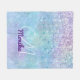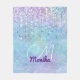 Iridescent Turquoise Silver Faux Glitter Monogram Fleece Blanket