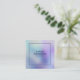 Iridescent shimmering purple and blue background with a tin black square frame.