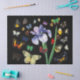 IRIS AMONG COLORFUL BUTTERFLIES Black Floral Tissue Paper