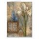 © Silvia Vassileva / Wild Apple. The image shows a white iris, and a decorative square tile on the side. The tile on the left side has a brown border.