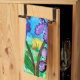 Perfect for the kitchen or matched as a bathroom set with a toothbrush holder, soap dispenser, bathmat, plush towels, and shower curtain for a relaxing escape to nature featuring my original water colour depicting purple iris blossoms and a Monarch butterfly at sunrise.