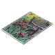 A personal sized, spiral bound notebook for notes and journalling that features a cover photo image of Iris blooms and a wooden, garden park bench. A lovely, floral design!