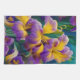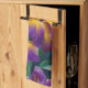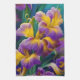 Iris Floral Purple and gold blue green leaves Tea Towel