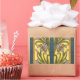 Iris Flower Art Nouveau Stained Glass Blue Gold Rectangular Sticker