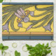 Iris Flower Art Nouveau Stained Glass Blue Gold Tea Towel
