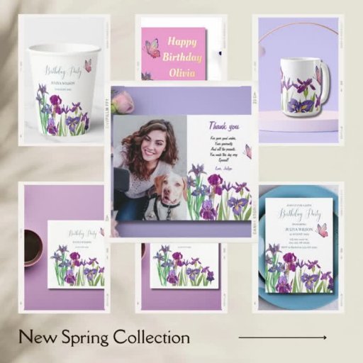 Iris flower watercolour Anniversary Party Invitation with purple watercolour floral garden can easily personalise.
