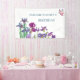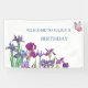 Iris flowers Birthday Party Banner with blue text and watercolour