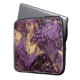 Warm purples with golden accents in a rich layering of fluid paint drips and artistic splashes.