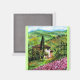 Tuscany landscape,colourful ,vibrant ,expressive beauty of Italian countryside and purple violet iris fields ,beautiful Summer flora in bright green,yellow ,brown,blue ,white colours,meadows,flower field,cypress and olive trees,rustic old farm house under the blue sky and white clouds .Acrylic painting on canvas .