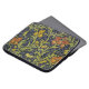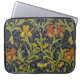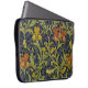This design features a print of a fabric design created by the British artist William Morris (1834–1896), who is associated with the Arts and Crafts Movement. It depicts blue and orange iris flowers in an elegantly symmetrical pattern. The flower is named after Iris, who was the Greek goddess of the rainbow and a messenger for the Olympian gods, carrying messages down to humanity. The leaves and stems of the iris plants are depicted in blue and green. There are a few yellow birds perching on some of the plants' foliage. The original pattern was designed by William Morris in 1887.