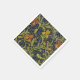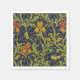 This design features a print of a fabric design created by the British artist William Morris (1834–1896), who is associated with the Arts and Crafts Movement. It depicts blue and orange iris flowers in an elegantly symmetrical pattern. The flower is named after Iris, who was the Greek goddess of the rainbow and a messenger for the Olympian gods, carrying messages down to humanity. The leaves and stems of the iris plants are depicted in blue and green. There are a few yellow birds perching on some of the plants' foliage. The original pattern was designed by William Morris in 1887.