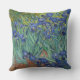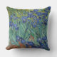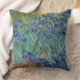 Irises by Vincent Van Gogh, oil on canvas 1889, is a painting of a patch of blossoming, brilliant violet and white iris flowers in a flower garden. Painted from life during the artist’s stay in Arles in the south of France, the painting builds short, swirling brushstrokes and flowing, coloured contour outlines into a composition that captures the inner life, growth, form and movement of the flowering plants with their long, dynamic green leaves. Van Gogh here has synthesized the lessons of French Impressionism into his own unique and original vision, with exaggerated jewel-like colours that give the effects of stained glass.