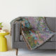 A quality printed throw has its advantages. This is a much finer weave throw than its loopier cousins, and though lighter, it is worth the investment for custom room accessorizing. The back is much prettier than the typical brown, and the fringe on the long sides very vivid, the selvage nicely done. Before photographing, I washed the throw in cold water, delicate, with a thicker woven throw the same size. On tumble dry low, this throw was dry in half the time as the other. This is a very practical quality if you use throws for furniture covers or to wrap up in frequently. The sleekness of the fabric makes it a great layer for accenting or protecting without the feeling of sitting on too much stuff. Perfect for napping or when you feel a light chill coming on. The color printing is beautiful and on this fabric, matched the design and color of my Photoshop image. This is an advantage for blending room fabrics and colors. The fringe on the short sides prints the colors from the design image and therefore varies from the side fringe. I streaked a white fractal line through the plaid pattern to give the illusion of weaving. This printed as crisp as an illusory thread, and put some white in the short side fringe, showing another advantage of print vs loomed- for artistic purposes, line lines, detail, and color integrity can be planned and preserved. My loomed throws have color limitations and more of a needlepoint texture. Print throws reproduce an exact image. The throw felt a little stiff straight out of the package, but this went away in the first delicate wash. Of course I searched the wash water for ink or bleeding and there was none.
