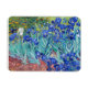 Irises (1889) Vincent van Gogh. Cute summer landscape. Blue irises bloom in a flowerbed in a green garden. Reproduction of famous works of art images in the public domain.