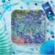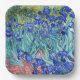 Irises (1889) Vincent van Gogh. Cute summer landscape. Blue irises bloom in a flowerbed in a green garden. Reproduction of famous works of art images in the public domain.