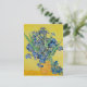 Irises (1890) Vincent van Gogh. Lovely positive still life. Large yellow vase with a bouquet of blue irises on a yellow background. Reproduction of famous works of art images in the public domain.